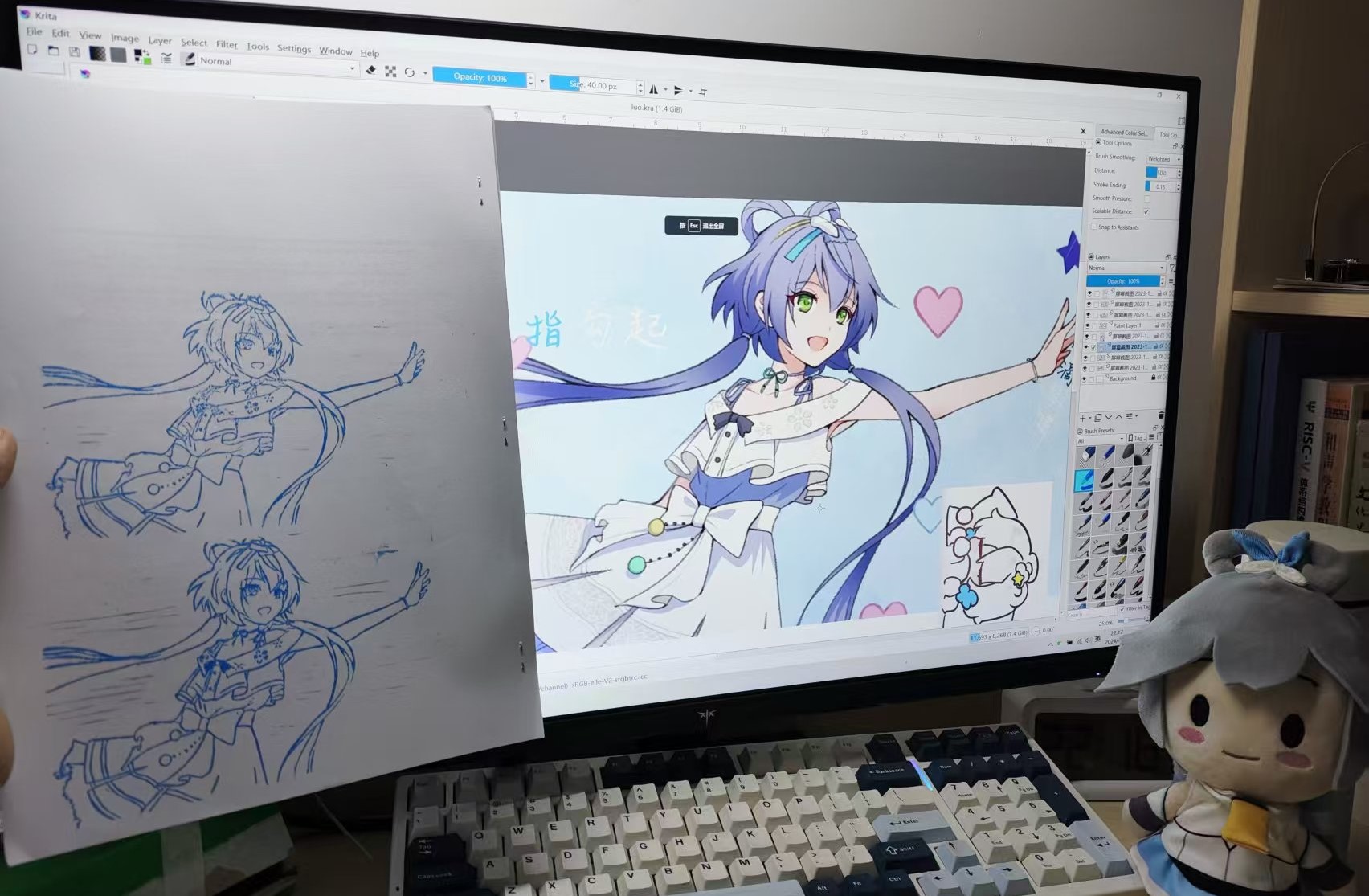 刻的《万分之一的光》里的一只洛天依,本来想把几个立绘都刻出来,集齐完整的一套,但是工作量有点大,就鸽了